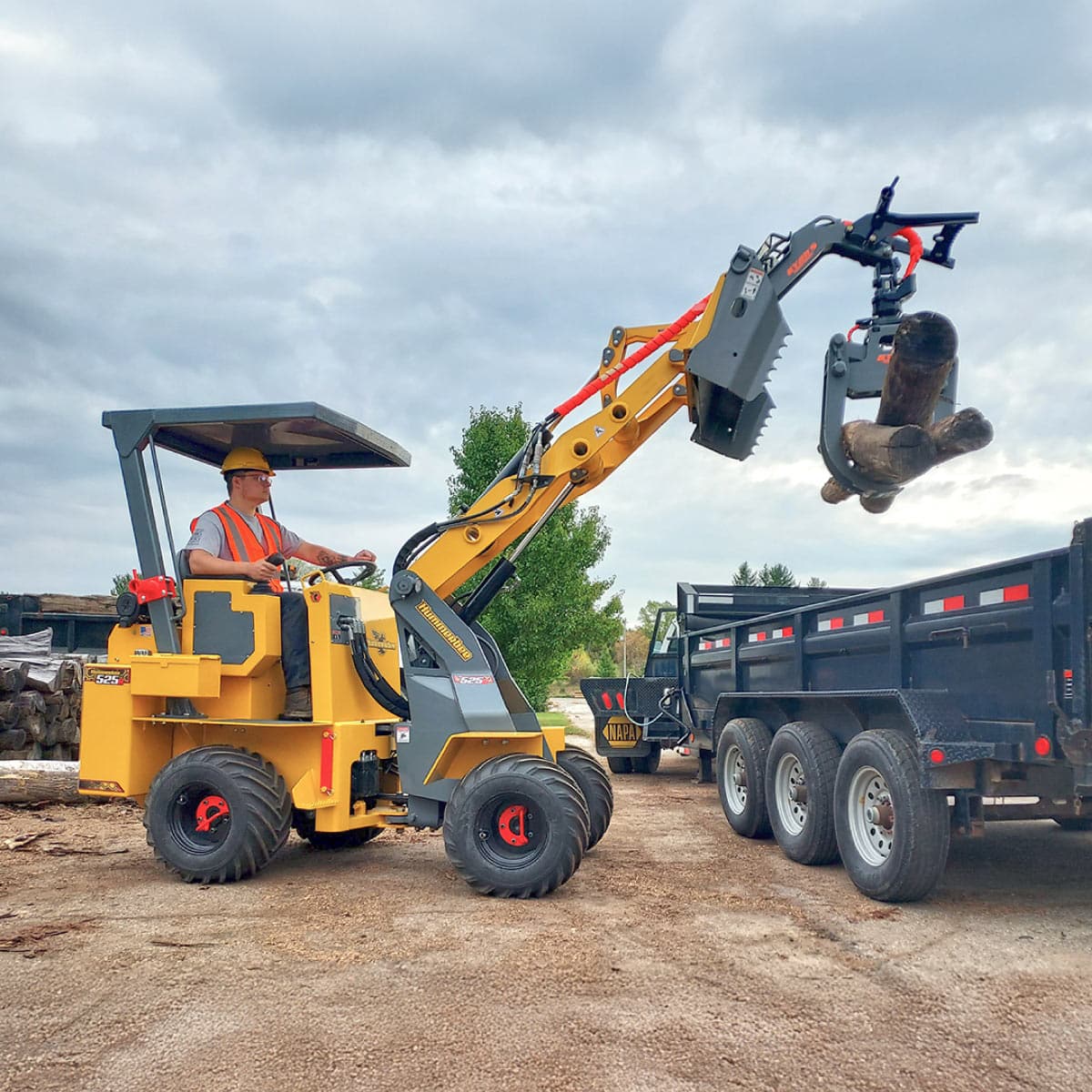 The Hummerbee Compact Articulated Loader is designed to accommodate virtually all universal skid steer style loader attachments. Unlike European-made compact loaders, you can use the attachment style and brand of your choice, readily available from a number of U.S. manufacturers. And, with our signature hydraulic tool locking system, you never have to leave the cab to secure your attachments to the tool mounting plate. Versatile, practical, economical…just a few of the many reasons why Hummerbee is the best choice for your next compact articulated loader.